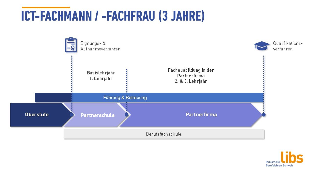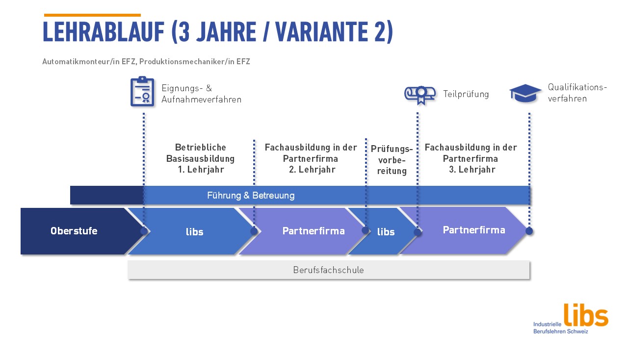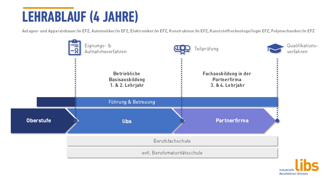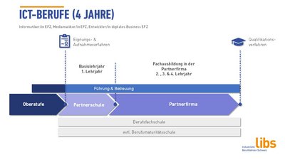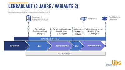 Auch wenn dein Lehrvertrag mit libs abgeschlossen wird: Deine Ausbildung wird von libs und deinem Lehrbetrieb gemeinsam bestritten. Die Basisausbildung übernimmt libs. Im dritten und vierten Lehrjahr (bei den Informatikern, Logistikern und Kaufleuten z.T. schon ab dem ersten Lehrjahr) erhalten Lernende ihre Fachausbildung bei ihren Partnerfirmen. Dabei lernen sie eine oder zwei Firmen kennen und sind produktive Mitarbeitende in der Wertschöpfungskette.