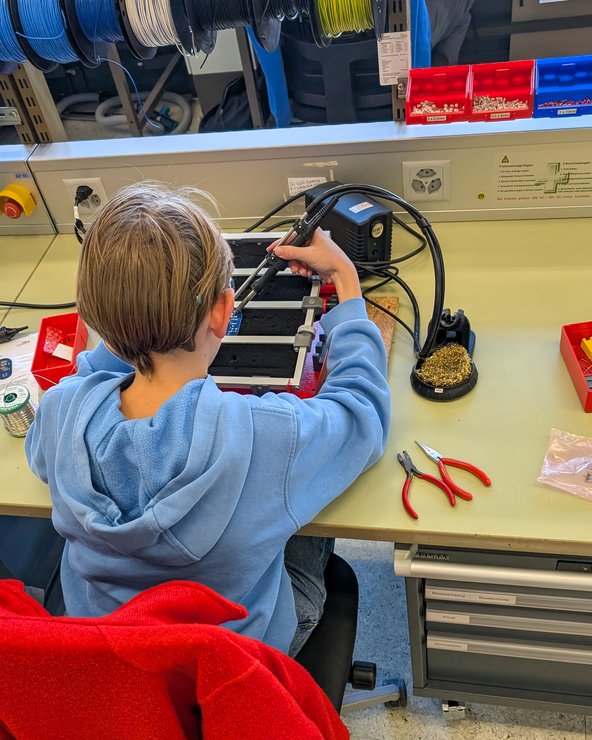 Am diesjährigen Nationalen Zukunftstag durften wir über 100 junge und interessierte Kinder herzlich begrüssen. In Zusammenarbeit mit einigen unserer Partnerfirmen wie Hitachi Energy, Accelleron, GE Vernova, ALSTOM und ABB konnten wir den jungen Besuchern viele, abwechslungsreiche Einblicke in unsere Ausbildungsstätte geben. In Gruppen absolvierten sie verschiedene Workshops und Führungen, dabei hatten sie die Möglichkeit, selber kleine Aufgaben auszuprobieren, stets mithilfe unserer libs Lernenden. Es wurde gelötet, geschraubt, programmiert und konstruiert.